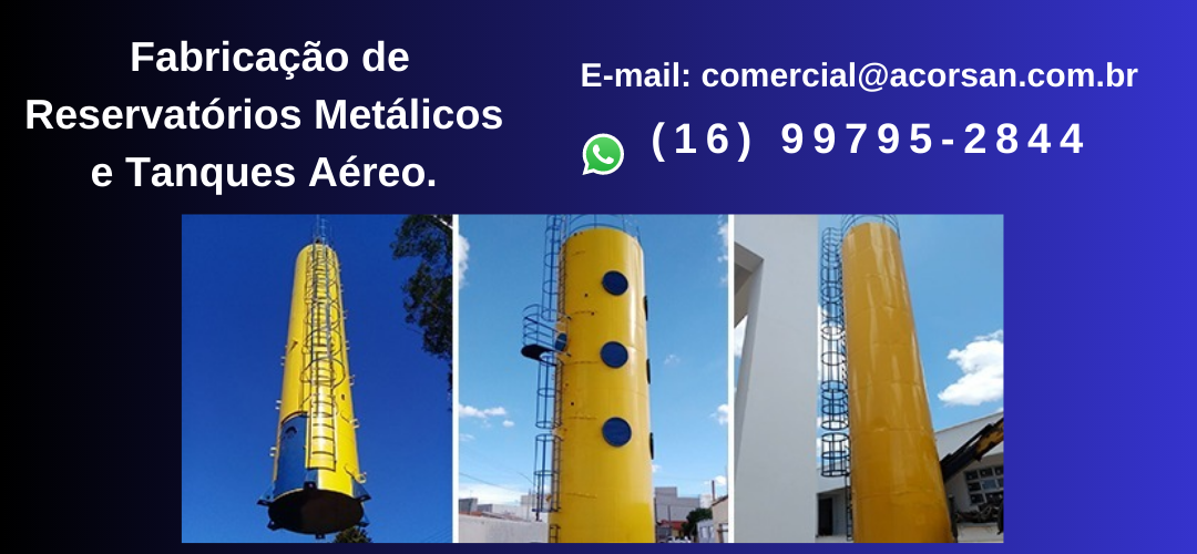 O Caixa D'Água Elevada Metálica, Reservatório Metálico| Castelo d'água |Caixa d'água Metálica conta com uma grande linha de produtos metálicos como: reservatório metálico tipo taça com água na coluna, reservatório metálico coluna seca, reservatório tubular, reservatório elevado, reservatório cilíndrico com fundo cônico, reservatório apoiado, reservatório metálico in loco, recipiente metálico padrão FNDE, bebedouro australiano e tanque aéreo com bacia de contenção. Mais Informações Contato/WhatsApp 16-99795-2844